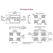 CS-043-048.0M,Connor-Winfield晶振,3225mm石英晶振 尺寸圖