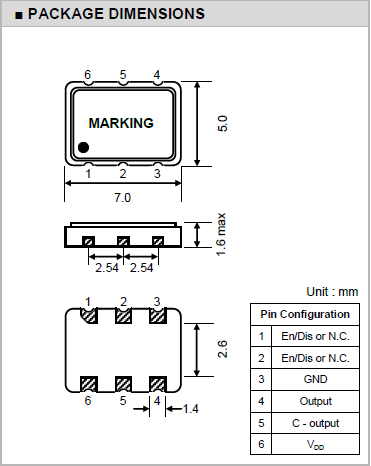 | 輸出方式 Output: | LVDS | Package Type 封裝類型 | 6-SMD |