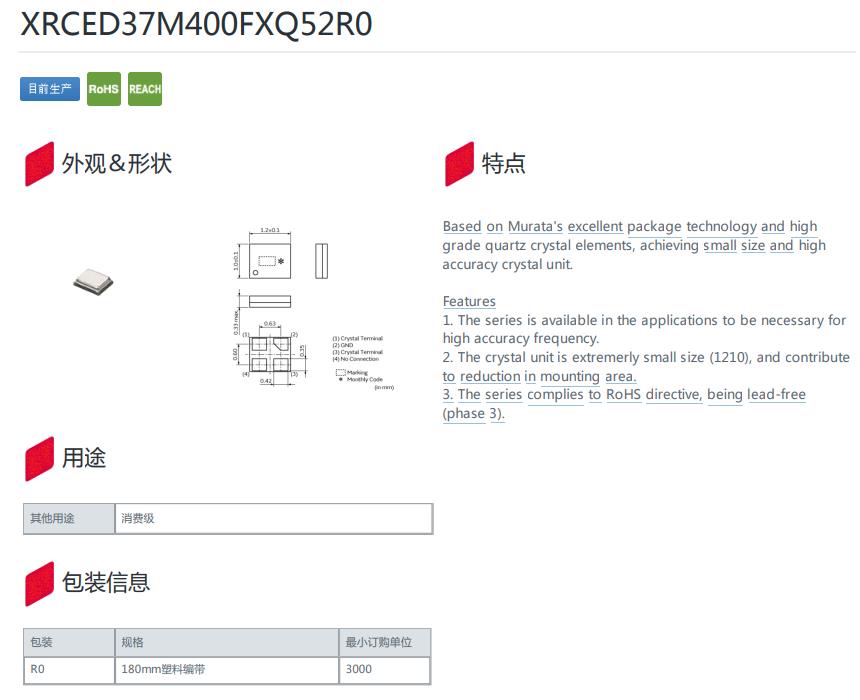 XRCED37M400FXQ52R0石英晶體諧振器,村田日本晶振MCR1210,XRCED37M400FXQ52R0石英晶體諧振器,村田日本晶振,MCR1210超小型晶振,無源晶振,貼片石英晶振,1210mm晶振,環(huán)保晶振,智能手機(jī)晶振,平板電腦晶振,無線路由器晶振,數(shù)碼相機(jī)晶振.