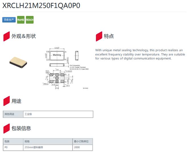 XRCLH21M250F1QA0P0 21.25MHz -30~85℃ 5032mm 8pf ,XRCLH21M250F1QA0P0,頻率21.25MHz,工作溫度-30~85℃,尺寸5032mm,負載8pf,高精度晶振,數(shù)字通信設備晶振,測量儀器晶振,微處理器晶振,數(shù)碼音影系統(tǒng)晶振.