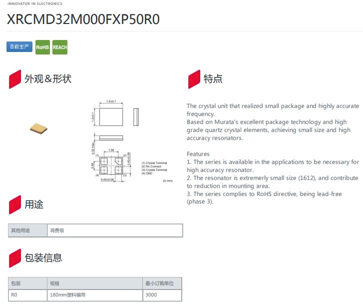 日本村田品牌晶振MCR1612,XRCMD32M000FXP50R0超小型晶振,參數(shù)圖