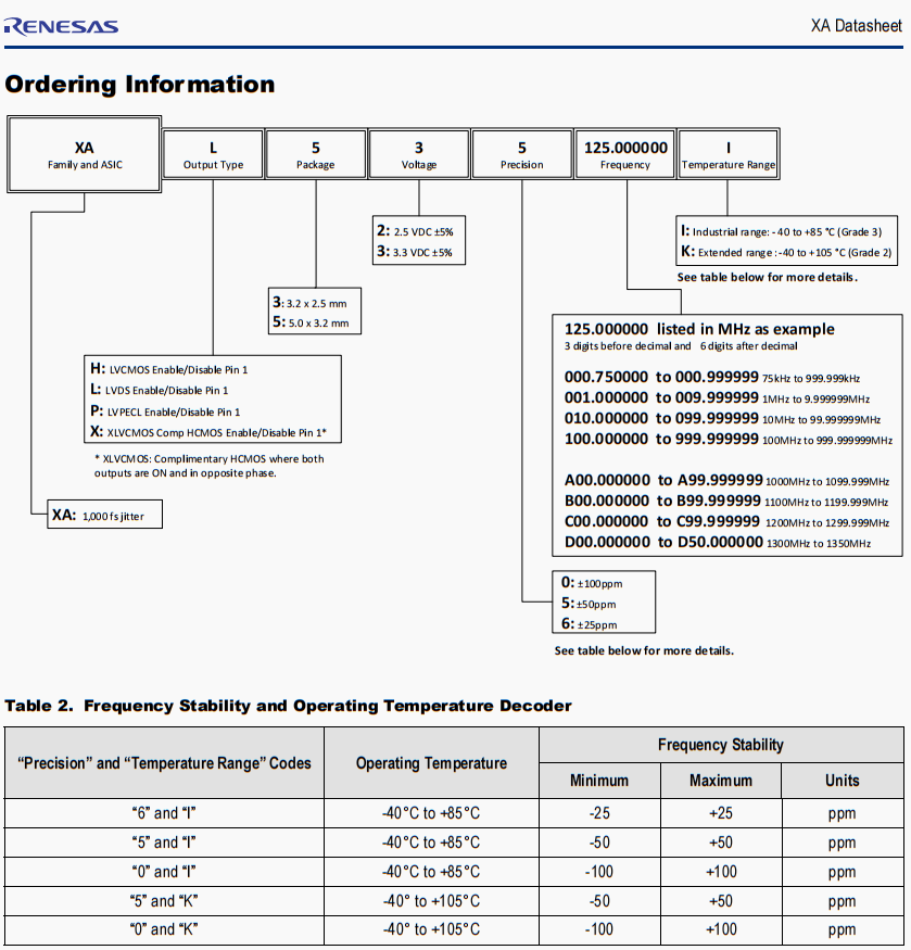| XAL325033.333300K | Renesas晶振 | XA | 33.3333 MHz | LVDS | 2.5V | ±50ppm |