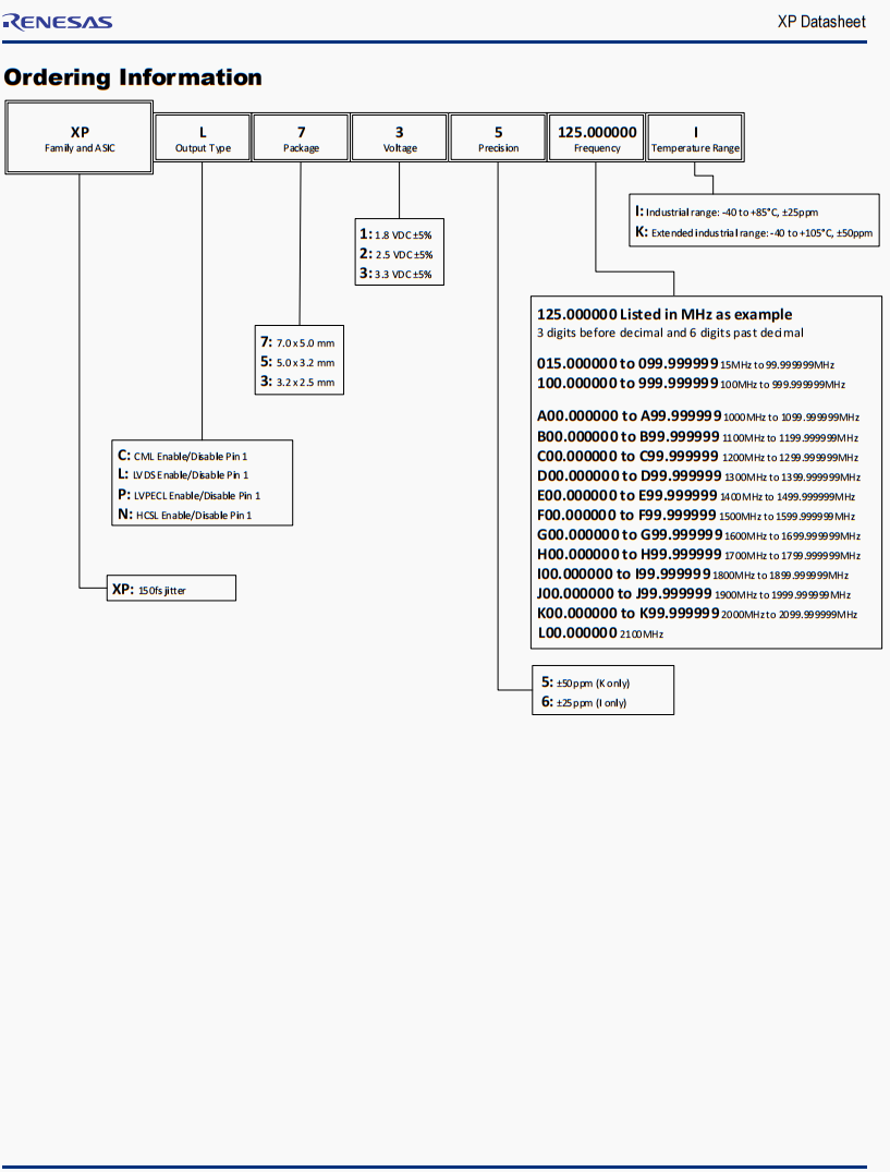 | XPP736125.000000I | Renesas晶振 | XP | 125 MHz | LVPECL | 3.3V |