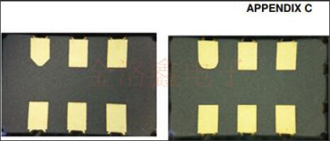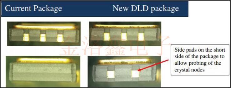 該P(yáng)CN用于通知對VV-800石英晶體振蕩器系列5x3.2mm.2mm封裝的表貼型VCXO振蕩器中使用的軟件包的更改.通過在封裝中增加外部焊盤來修改封裝,以允許在密封振蕩器之后對晶體進(jìn)行DLD和晶體阻抗(CI)測試.封裝將添加兩個外部電鍍焊盤,如下所示,以便進(jìn)行此測試,從而通過篩選可能在DLD或高阻抗相關(guān)故障之后可能浮出水面的產(chǎn)品逸出來提高輸出質(zhì)量.當(dāng)前,在發(fā)貨前沒有對該部件執(zhí)行DLD測試.振蕩器內(nèi)部組件(例如IC或晶體)和組裝過程沒有任何變化,因此產(chǎn)品性能規(guī)格不會有任何變化.