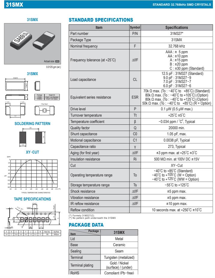 負(fù)載電容: 12.5 pF : 31M327 (Standard)