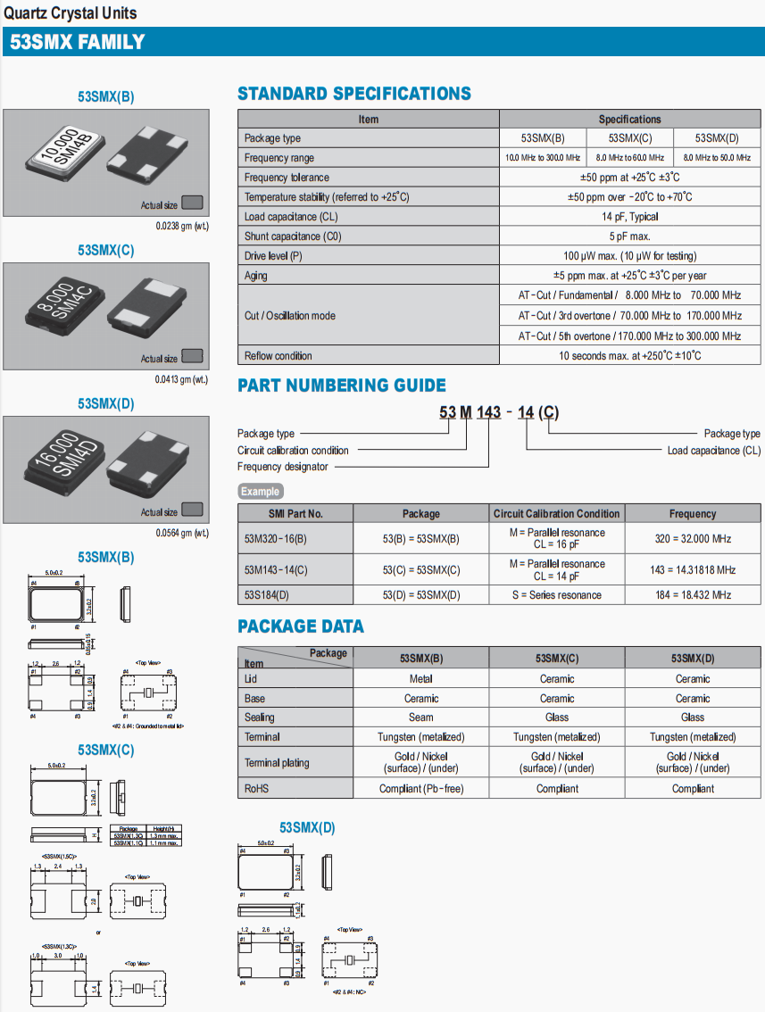 53M300-14(B)晶振,SMI高品質(zhì)無源晶振,無人機(jī)型號(hào)傳輸晶振