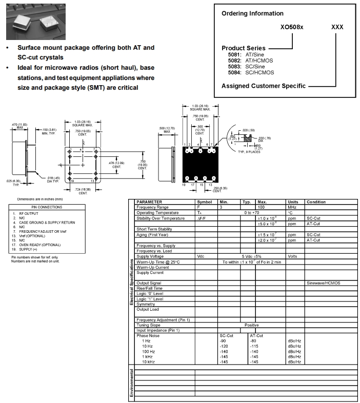 | 1073-005 20.000000 | M3H and MH | XO | ±100 ppm | 20 | ±100 ppm | 8-Pin DIP |