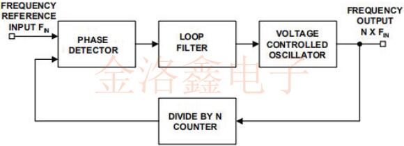 圖1包含一個(gè)基本PLL倍頻器的框圖.該電路的操作是所有鎖相環(huán)的典型操作.它基本上是一種控制電壓控制振蕩器(VCO)相位的反饋控制系統(tǒng).該輸入信號(hào)被施加到相位檢測(cè)器的一個(gè)輸入.另一個(gè)輸入連接到Ncounter除法的輸出.通常,兩個(gè)信號(hào)的頻率幾乎相同.鑒相器的輸出是與兩個(gè)輸入之間的相位差成比例的電壓.該信號(hào)被施加到環(huán)路濾波器.環(huán)路濾波器決定了PLL的動(dòng)態(tài)特性.濾波后的信號(hào)控制VCO.請(qǐng)注意,VCXO晶振的輸出頻率是提供給頻率參考輸入的輸入的N倍.