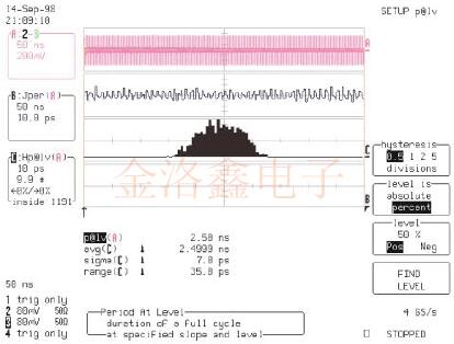 可以使用相同的工具評估晶振環(huán)境穩(wěn)定性,通過選擇其他Jitter Track參數(shù),可以確定寬度,時間間隔誤差,占空比,頻率或周期間抖動.