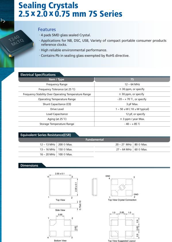 7S-24.000MAHE-T|-40~85°C|24MHz|2520mm無源晶振 特點(diǎn)