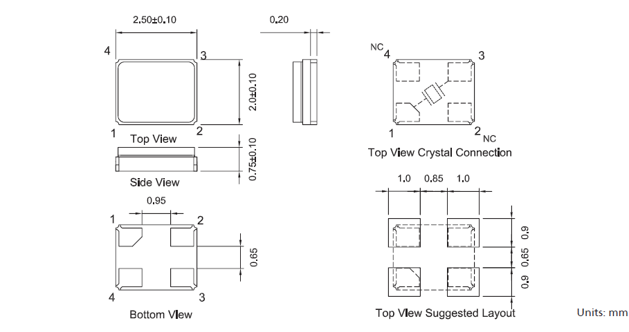 - 尺寸:2.5×2.0×0.75mm