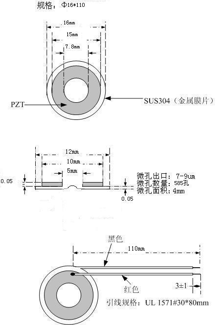 晶振廠家,微孔霧化片,16mm,110KHz超聲波霧化片