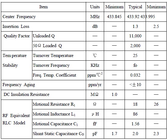 聲表諧振器,遙控專(zhuān)用F11四腳,R433.92M濾波器