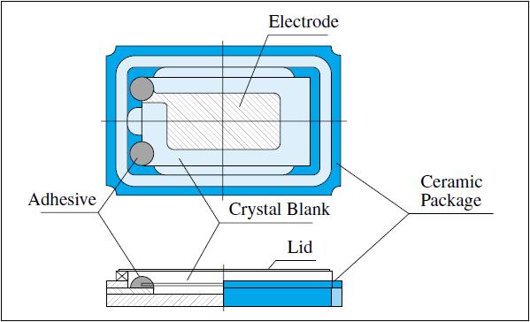 使用金屬封裝的石英晶體以BANE等金屬支持芯片。SMD在使用陶瓷基板的情況是可以直接在芯片上定位的。從人工水晶切出的芯片,在電極上鍍膜,并在基板上定位,以導電性黏著劑加以固定后封裝。整體來說,雖然是相當簡單的結構,但是無論是材料的選擇、制程的條件,都會影響到石英晶體的性能。這幾年,特別是移動電話上使用的石英晶體,相當要求具有防摔特性,其他的特性也都被要求具有可信度。石英晶體在作成SMD之后,其落下沖擊性與Reflow特性也會大大提升。這是因為SMD是以兩端支撐的方式來固定芯片,使石英晶體趨向無壓力的狀態(tài)。