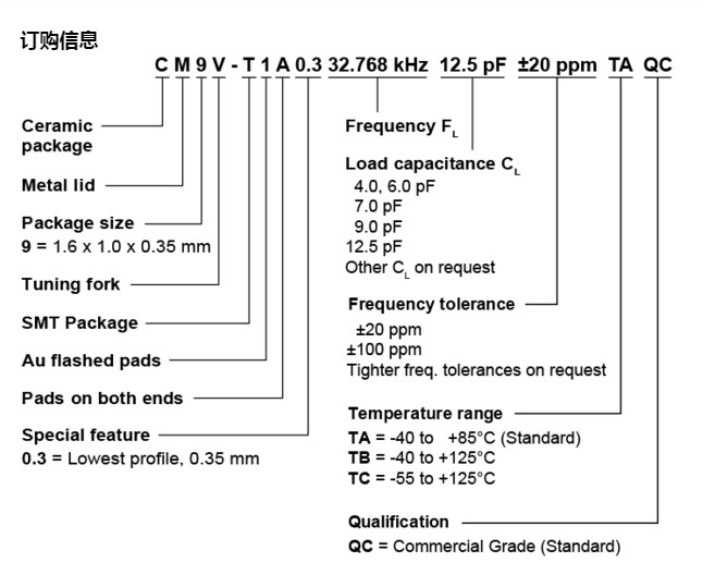 | CM9V-T1A-32.768kHz-9pF-20PPM-TA-QC | Micro Crystal | 晶體 32.768 kHz 9.0 pF +/-20 PPM -40/+85C |