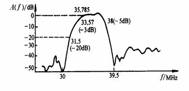 下方是聲表濾波器的幅頻特性