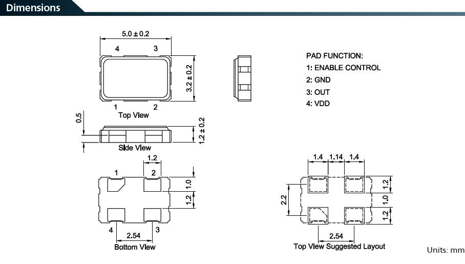 7CZ晶振5032封裝四腳金屬表面貼片型普通有源石英晶振,參數(shù)如下: