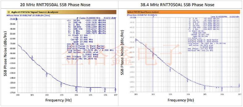 RNT7050A和RNT7050AL貼片晶振在10年內(nèi)均保持優(yōu)于1.5ppm的長期穩(wěn)定性(老化).產(chǎn)品符合IEEE1588v2,ITU-TG.813,G.8273.2和G.8262和G.8262.1的嚴(yán)格要求.RNT7050系列的設(shè)計和工程認(rèn)識到5G遠(yuǎn)程無線電頭(RRH)空中接口需要緊密的誤差矢量幅度(EVM)限制掩碼,因此參考時鐘的相位噪聲對EVM的貢獻(xiàn)很小. 出色的低本底噪聲-160dBc/Hz使5GRRH能夠滿足嚴(yán)格的誤差矢量幅度掩模要求-使RNT7050系列石英晶體振蕩器成為無線電和網(wǎng)絡(luò)接口的首選設(shè)備.上面的圖1展示了一個RNT7050AL單元,其頻率輸出為38.4MHz,其本底噪聲低至-160dBc/Hz.RNT7050系列為5G和其他電信應(yīng)用提供了理想的解決方案,在這些應(yīng)用中,對溫度變化的低敏感性,低老化和低相位噪聲至關(guān)重要.