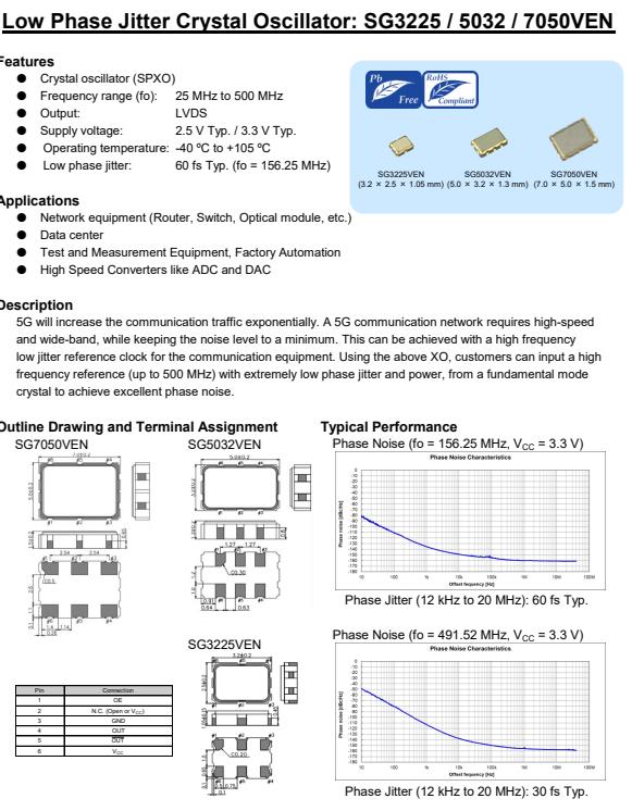 | X1G005331001000 | SG7050VEN | 156.253906 MHz | 7.00 x 5.00 x 1.70 mm | LVDS | 3.135 to 3.465 V | -40 to 85 °C | +/-25 ppm |