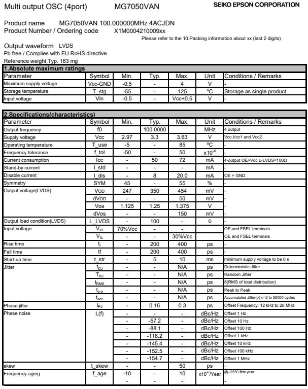 | X1M000431001000 | MG7050HAN | 156.250000 MHz | 7.00 x 5.00 x 1.60 mm | HCSL | 2.970 to 3.630 V | -20 to 70 °C |