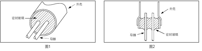 ?構(gòu)造 圓柱型石英晶振 (VT, VTC) 用玻璃密封 (參閱圖 1 和圖 2)