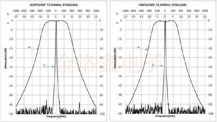 MCF和SAW濾波器的通過頻率與使用頻率之間的關系: